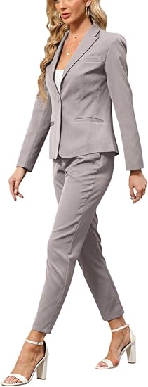 - Features: Solid color, slim fit, ankle length, one button closure, suits for work, 2 piece outfit for women, business suit, office suit.