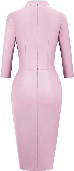 - Classic Vintage Style,Formal Tie Crew Neck,Knee Length,Sheath Pencil Hem Dresses,with Hidden Side Seam Pockets.