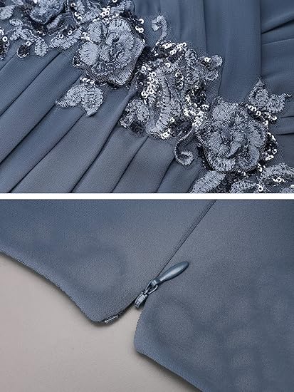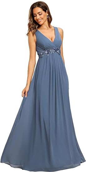 - Features: chiffon, embroidery, sleeveless, v-neck, applique waist, long party dress, mother’s dress