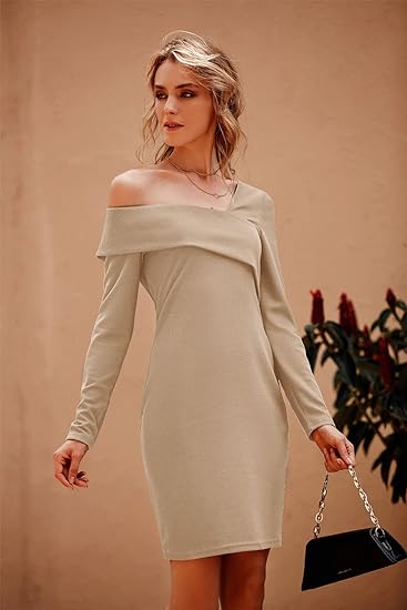 • UNIQUE DESIGN: Long Sleeve Bodycon Dress For Women/Off Shoulder Dress For Women/Asymmetrical Neck Fitted Dress For Women/Backless Pencil Dress For Women/Solid Color Sheath Dress For Women/Stretchy Bodycon Dress For Work Office/Slim Fit Party Dress For Women/Cocktail Dress For Women